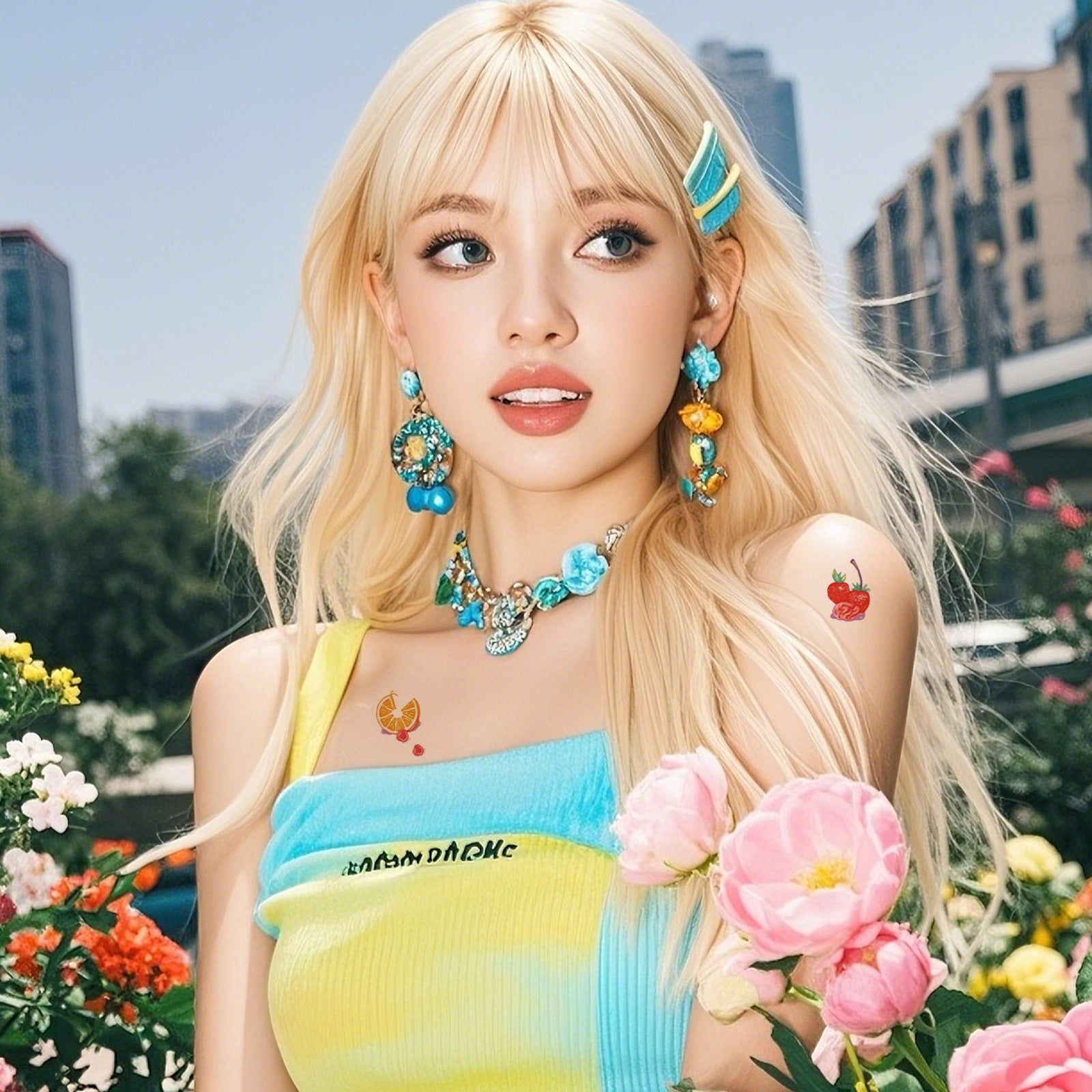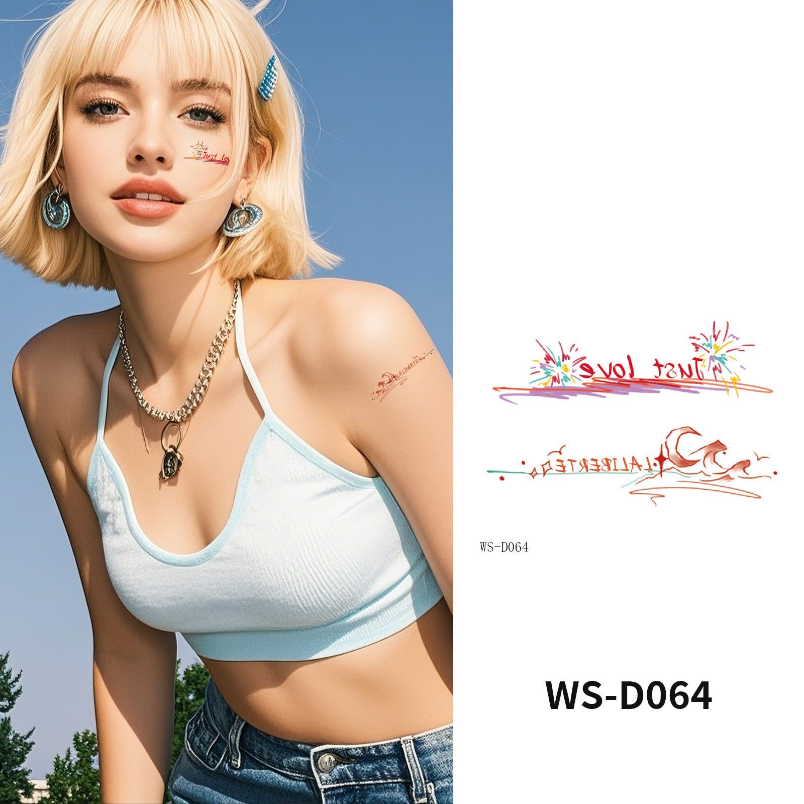 Colorful Cute Tattoo Sticker Advanced Sense Ins Summer Colorful Finger Clavicle Sticker