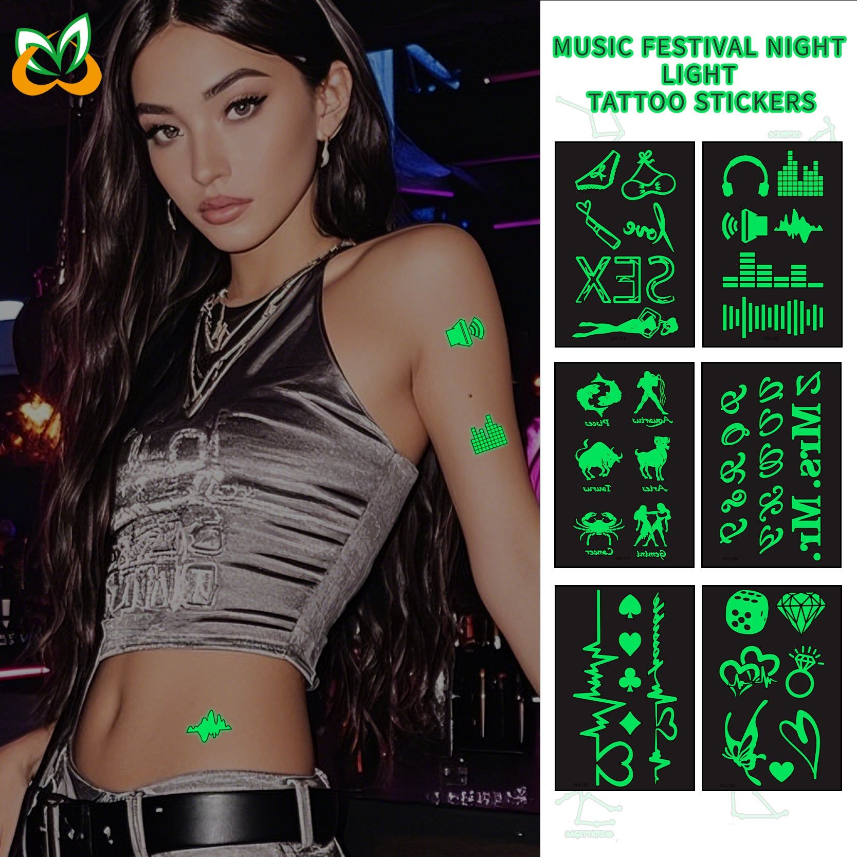 Luminous Tattoo Sticker Bar Prom Music Festival Neon Stage Waterproof Glow Tattoo Sticker For Men And Women