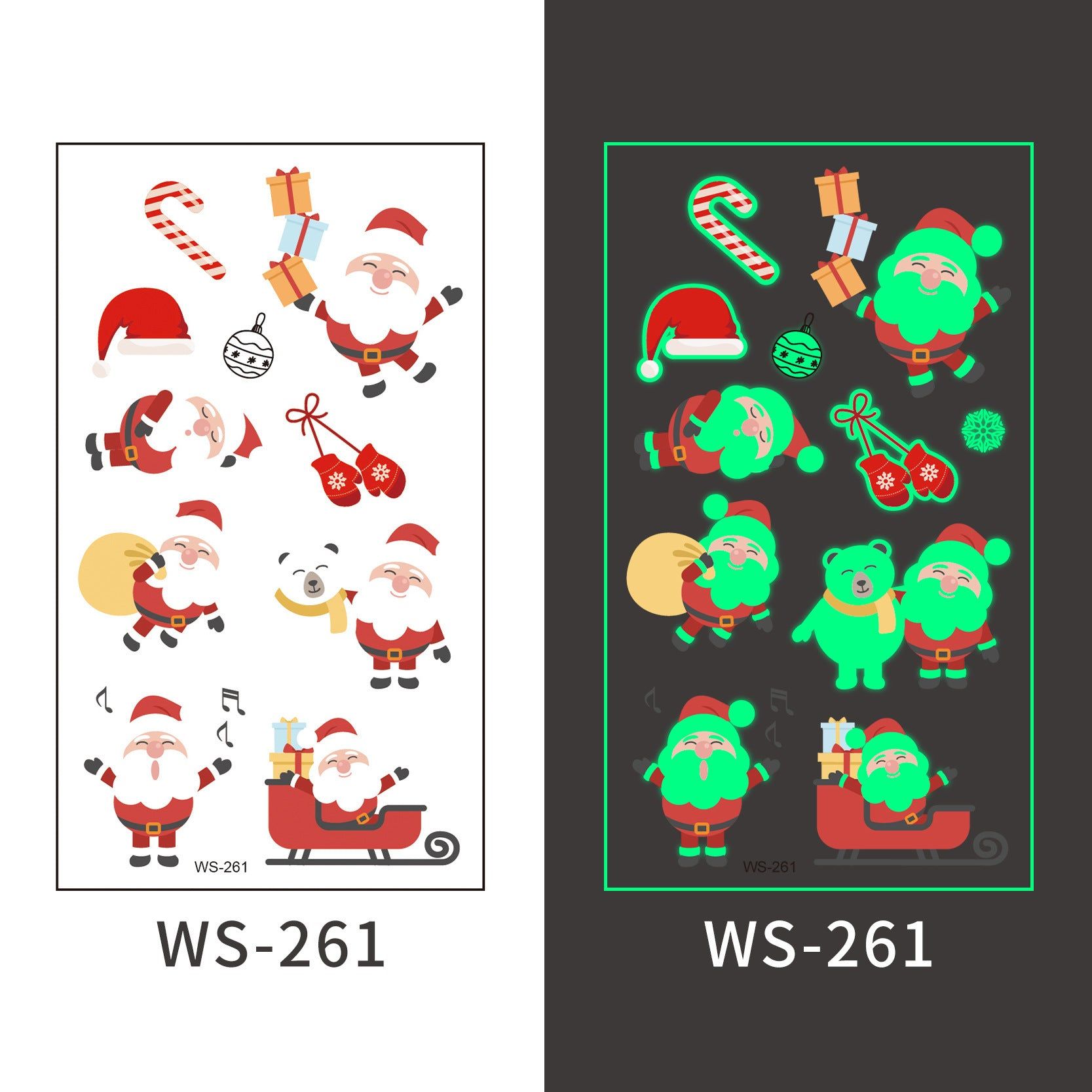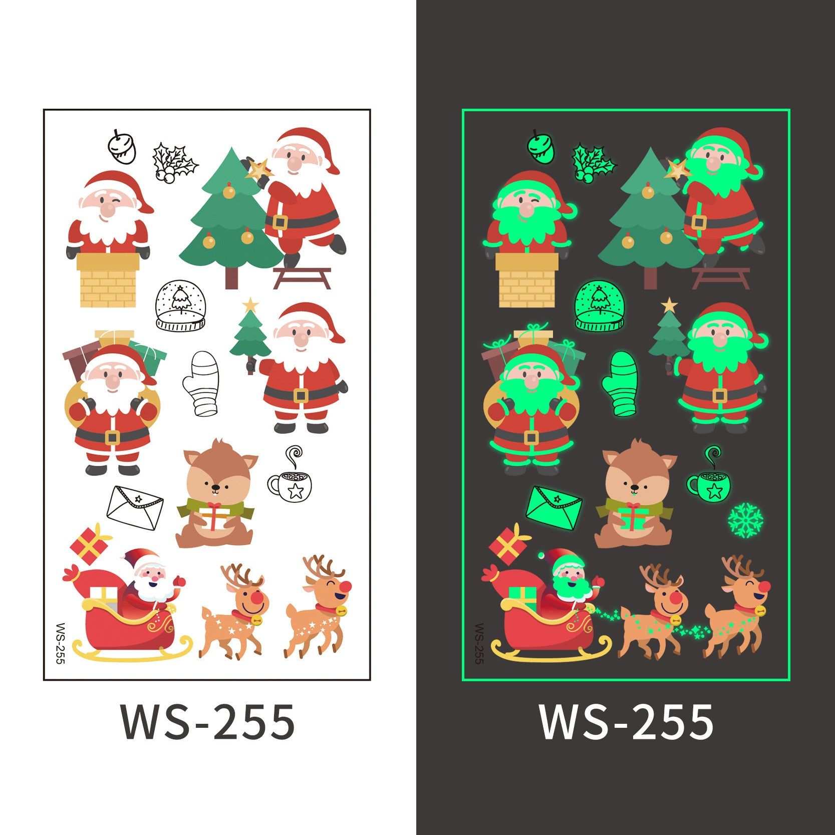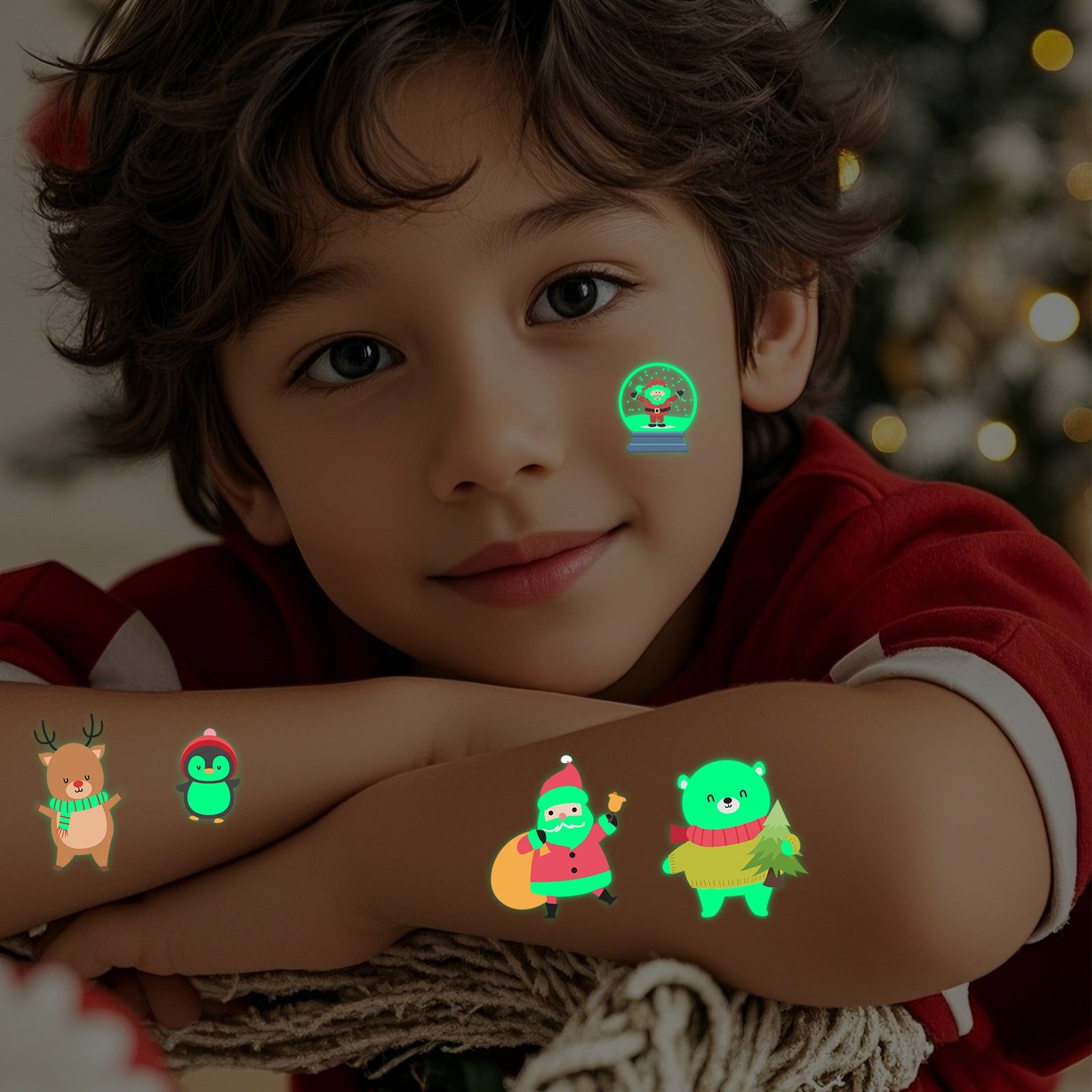New Christmas Luminous Tattoo Stickers Children Cartoon Waterproof Sweat Party Holiday Green Luminous Stickers