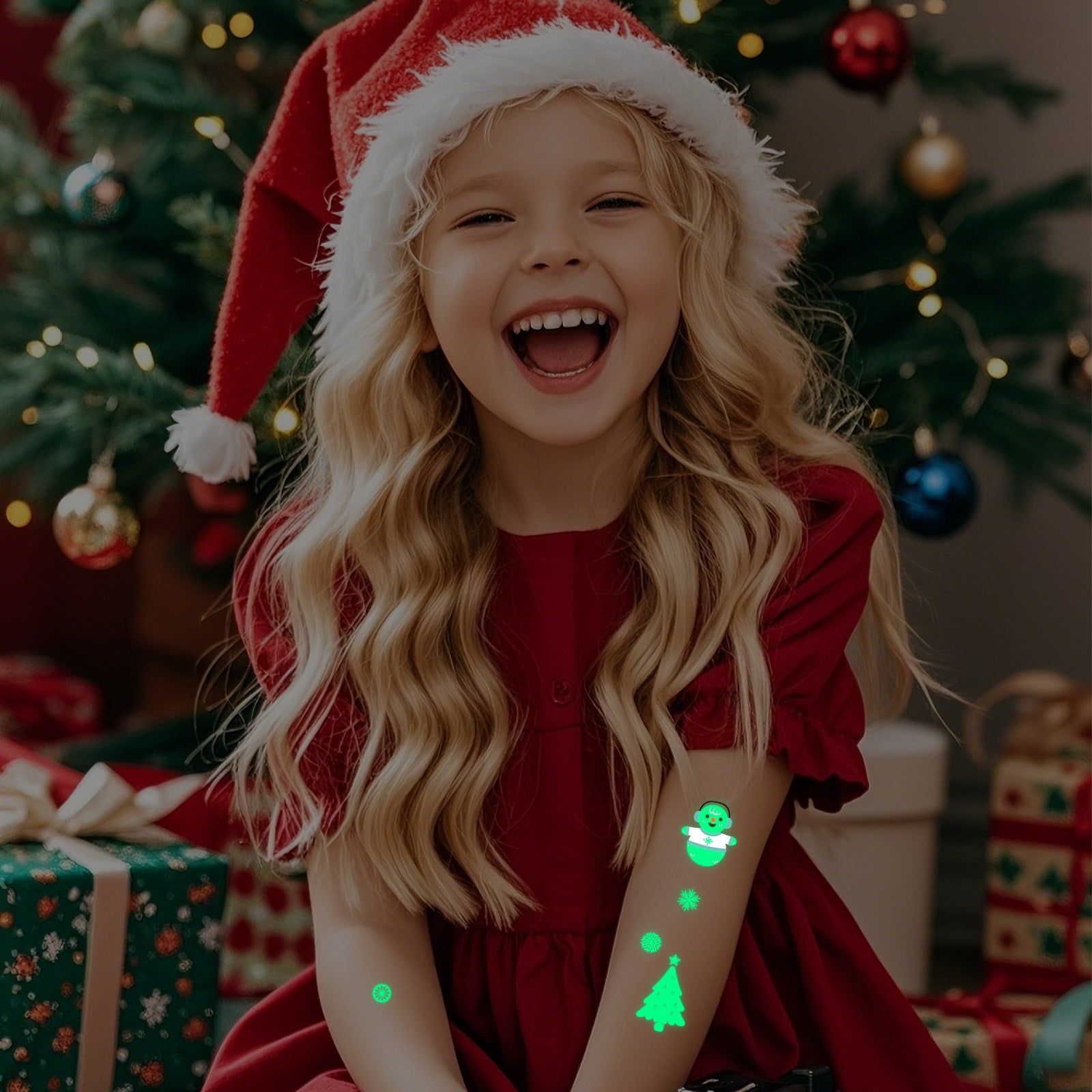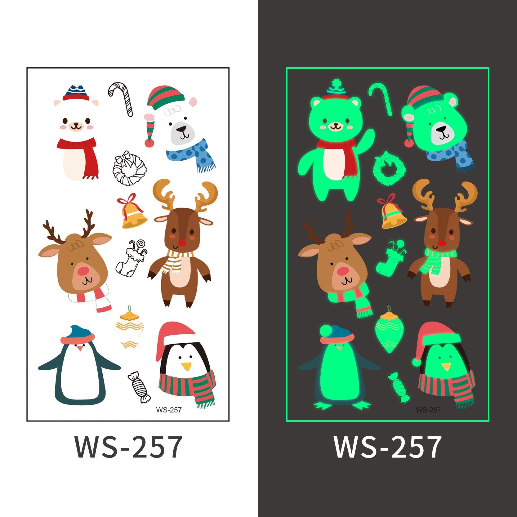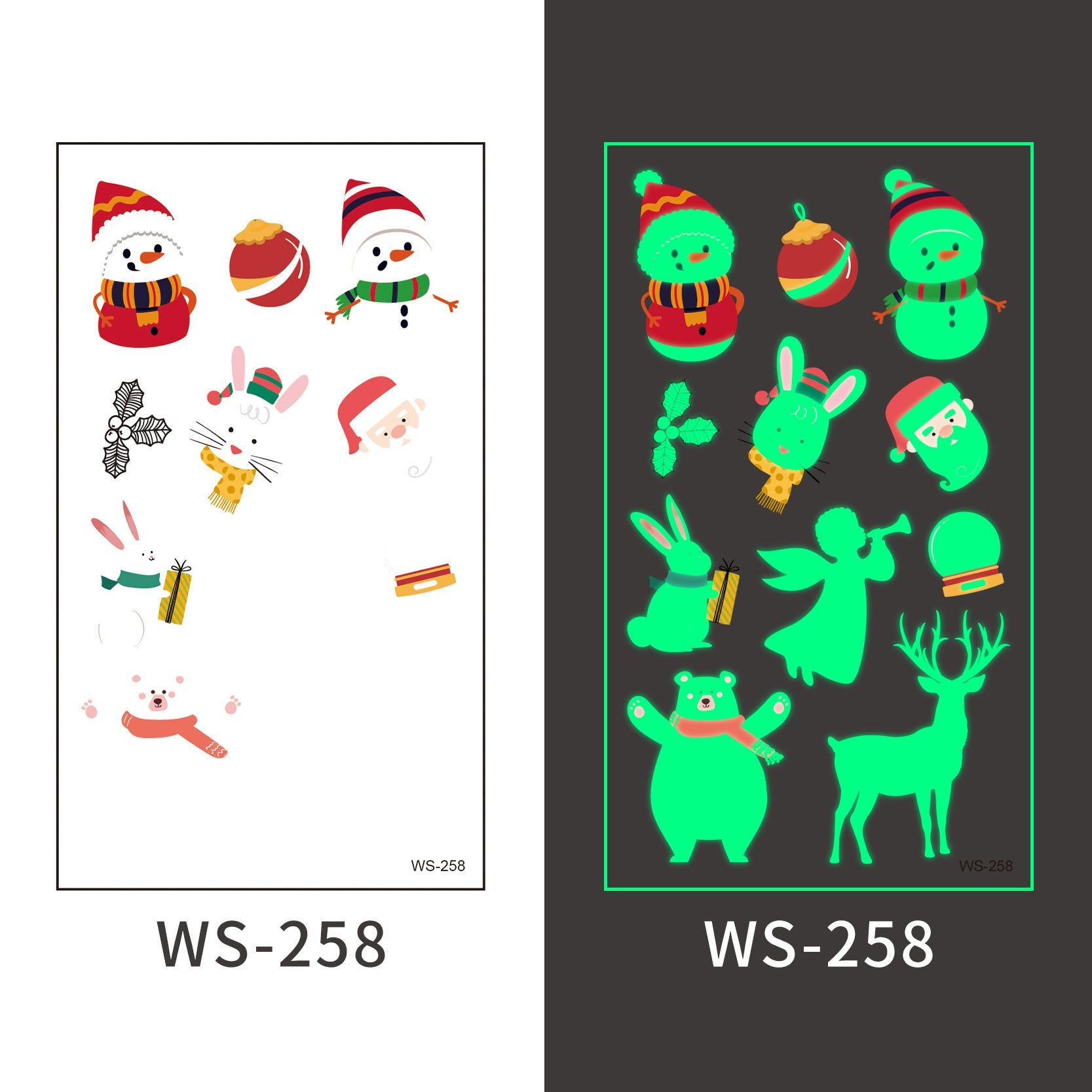New Christmas Luminous Tattoo Stickers Children Cartoon Waterproof Sweat Party Holiday Green Luminous Stickers