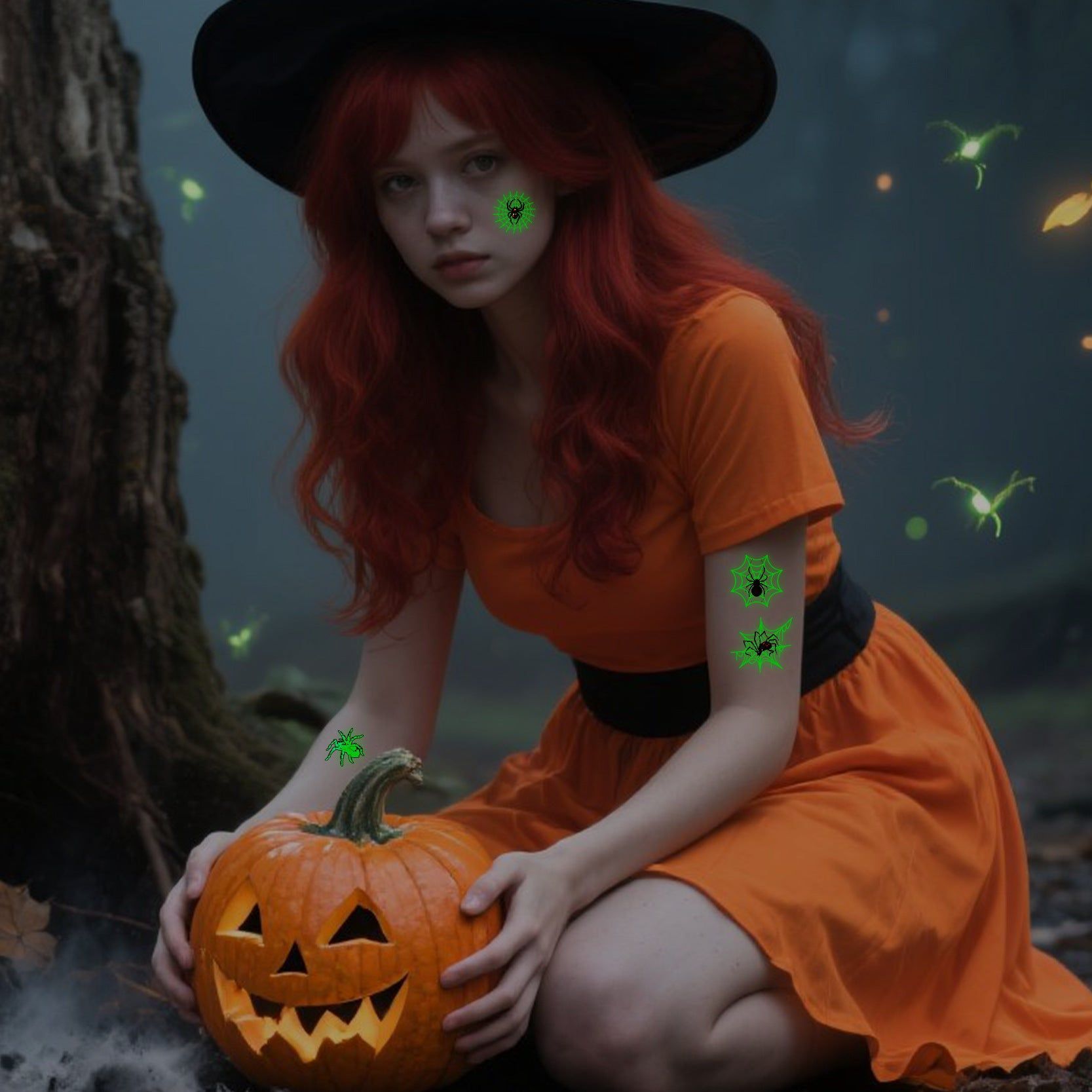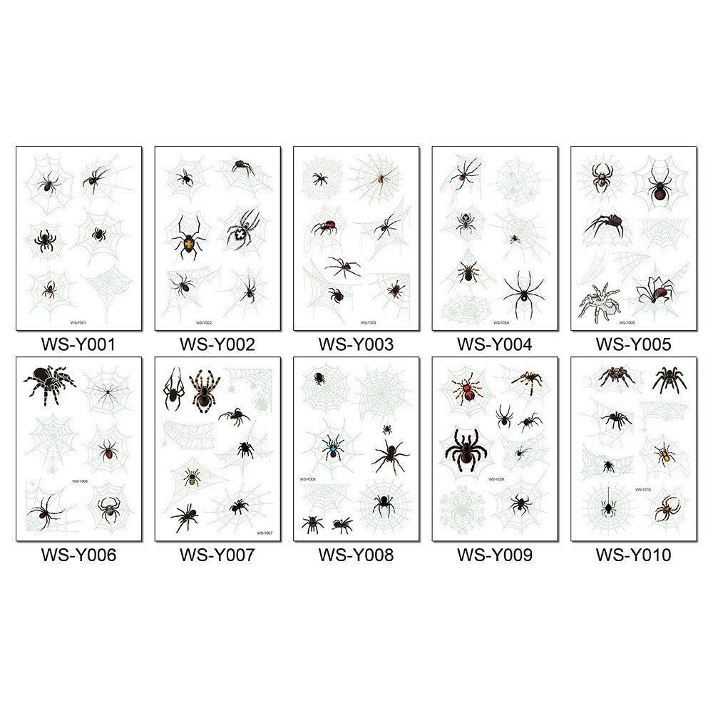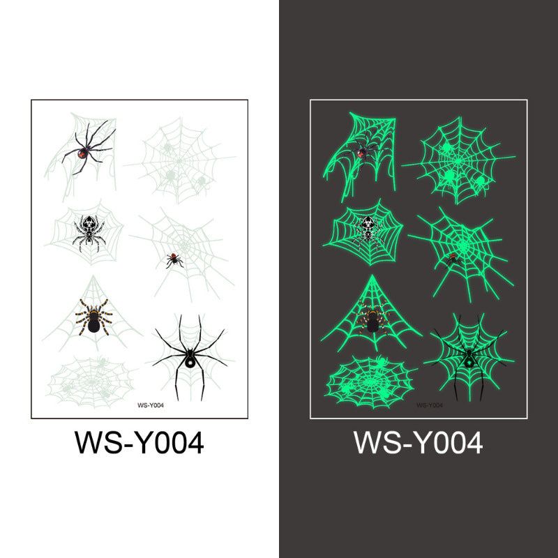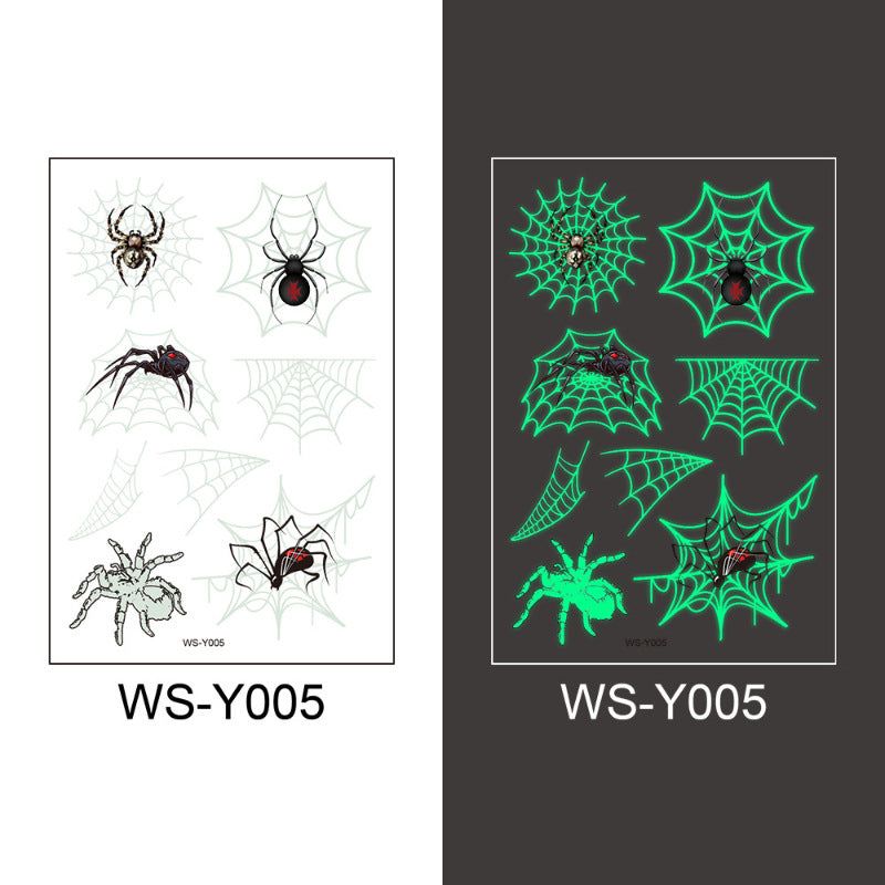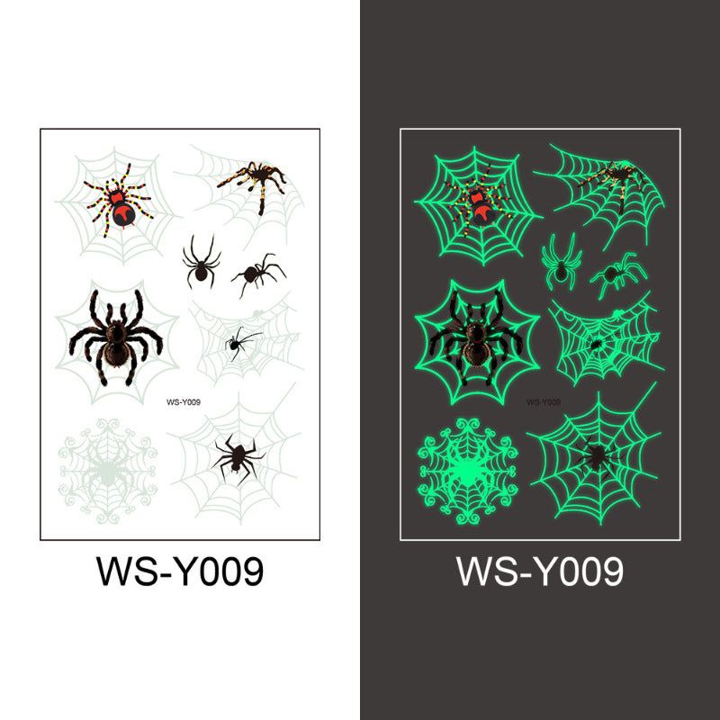 New Halloween Spider Web Luminous Tattoo Cross Border Party Event Green Luminous Stereo Spider Tattoo Sticker