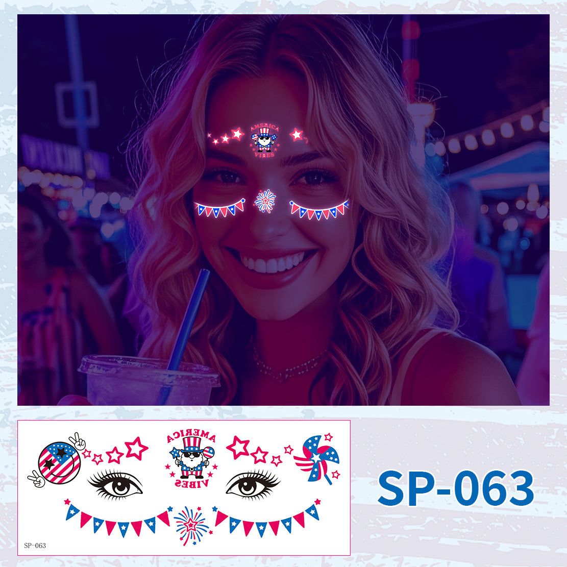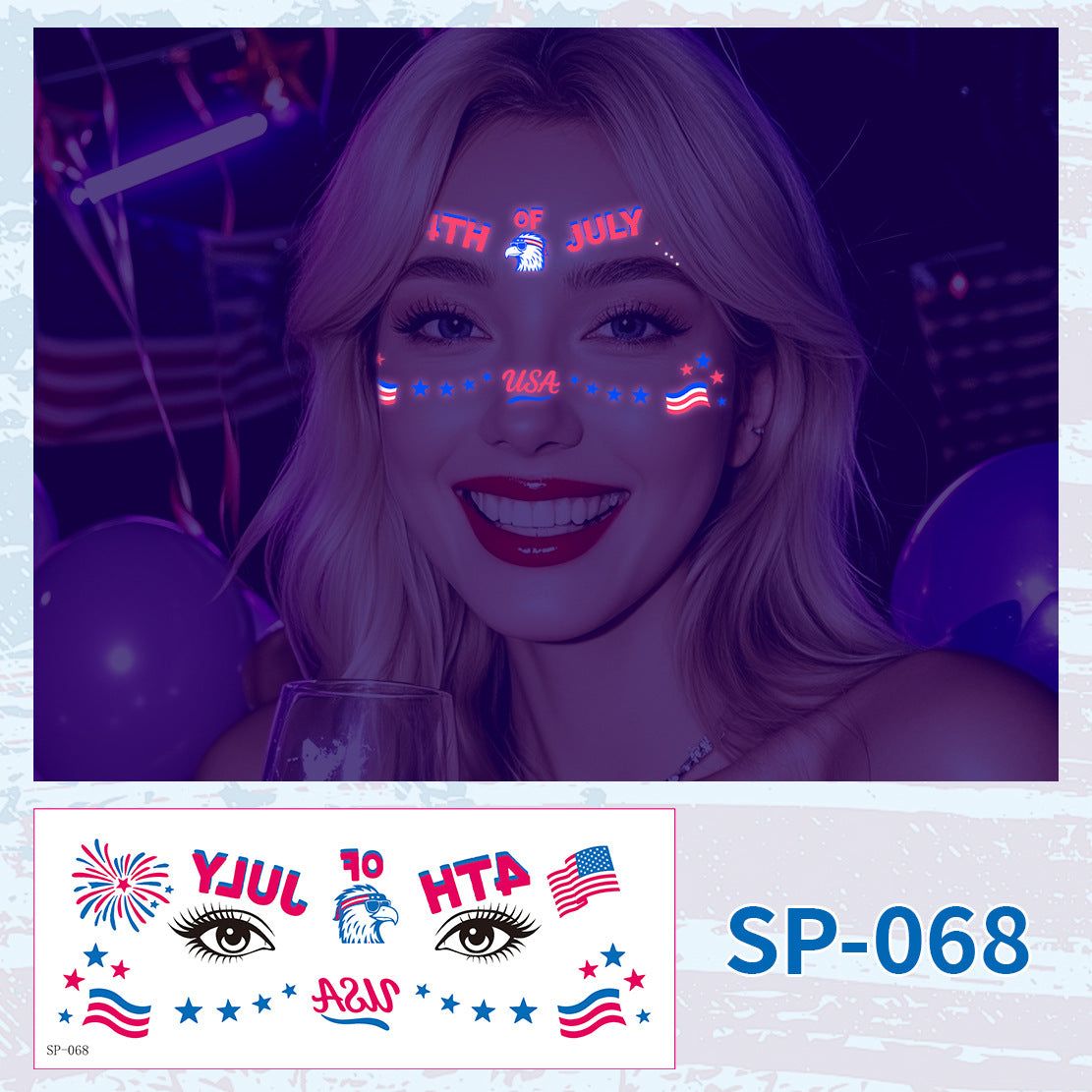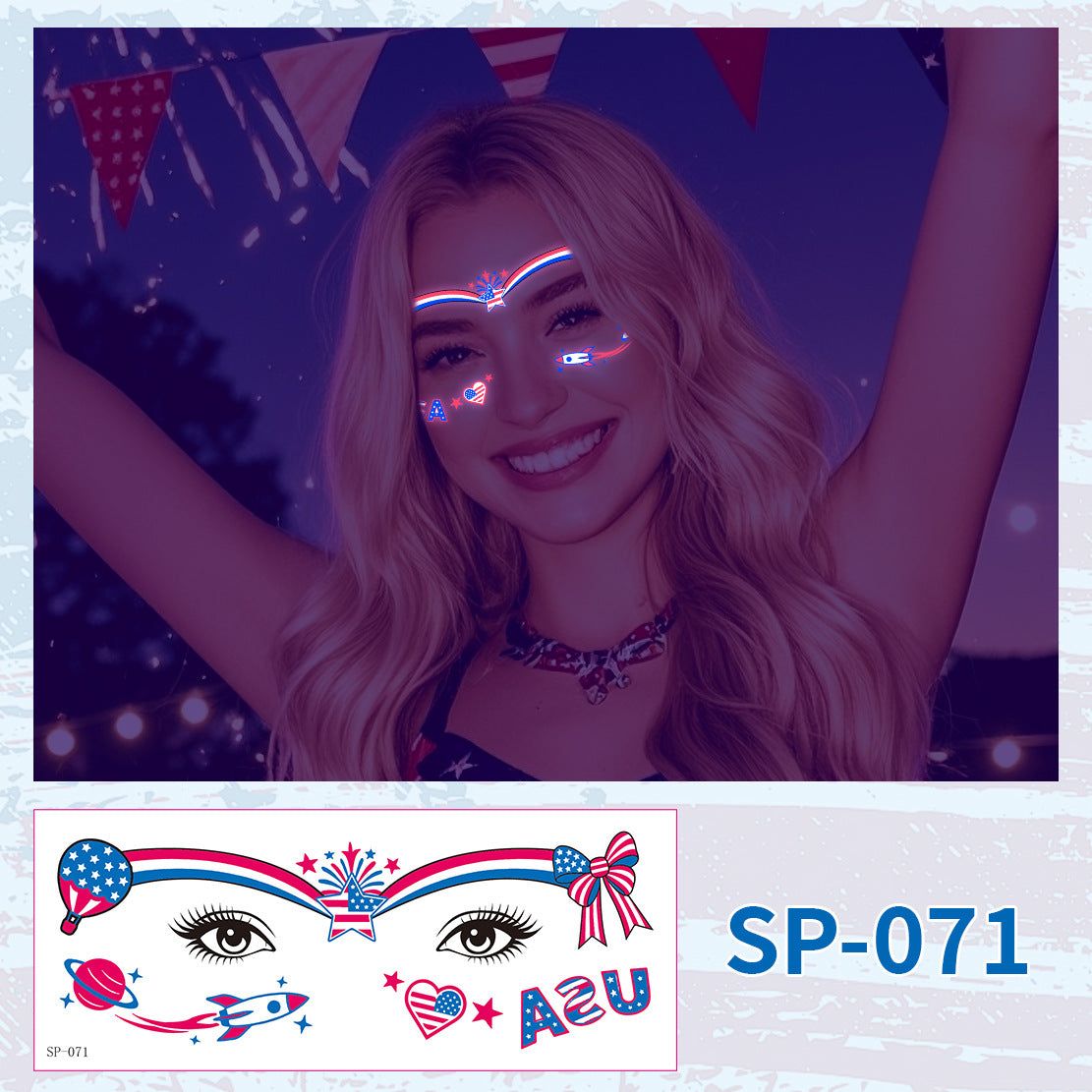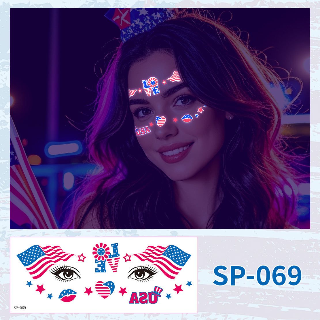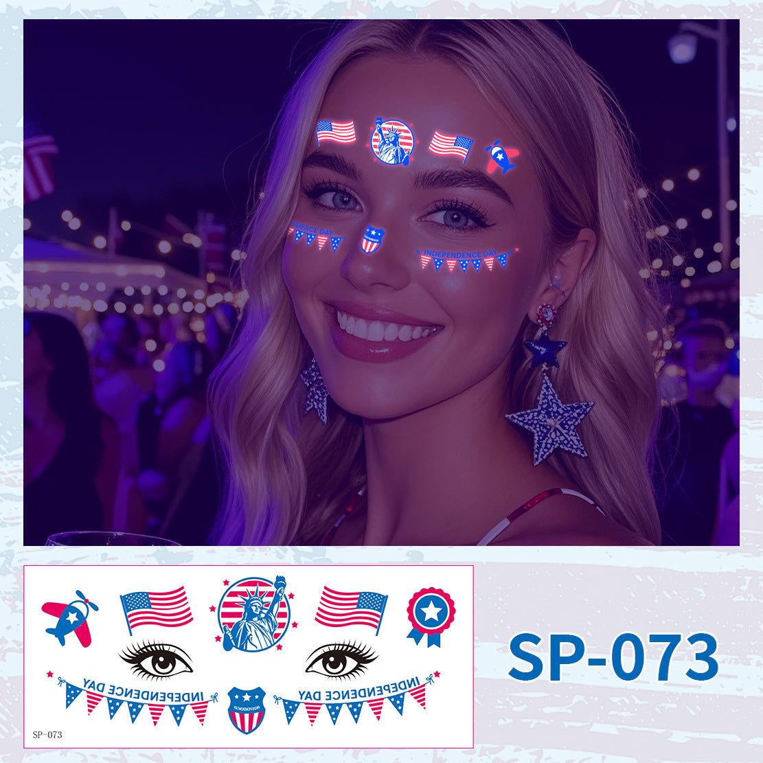 US Independence Day Face Sticker Waterproof Sweat Party Temporary Makeup Fluorescent Face Decorative Tattoo Sticker